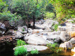 百泉山自然风景区位于怀柔县峪道河北雁栖湖与幽谷神潭之间,距京城63公里。景区以其特殊的地理环境、雄奇的山体结构、丰富的植被及矿泉资源,构成了得天独厚的自然景观。