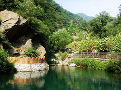 响水湖—旅游胜地。位于怀柔慕田峪长城西,距县城28公里,总面积18平方公里,是集长城、古洞、山川、泉潭、飞瀑于一体的天然养生大峡谷。景区地处明代长城建关筑堡的山谷之中,山谷两侧,峰峦起伏,怪石峥嵘、历尽苍桑而古貌依然的万里长城,巨龙欲飞,直插云霄,雄城险关,甚为壮观。明代摩崖石刻也给古关要塞增添了几分威严。而天然的连云洞和图腾阁,鬼斧神工般高深莫测,趣味无穷。奔腾的山泉,从山顶飞泻而下,形成五十余米落差的瀑布,甚有银河落九天之美,观后令人心旷神怡。景区内山峰陡峭,泉水淙淙,果林成荫,花草弥坡,空气清新。阳春,山花烂漫,花香溢人;盛夏,林荫欲滴,满目清翠;金秋,硕果累累,红叶满山;寒冬,银装素裹,冰川万丈。