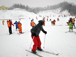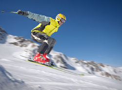 滑雪运动是运动员把滑雪板装在靴底上在雪地上进行速度、跳跃和滑降的竞赛运动。滑雪板用木材、金属材料和塑料混合制成。高山滑雪由滑降,小回转和大回转(障碍滑雪)组成。高山滑雪混合项目,由上述三个项目组成。人们成站立姿态,手持滑雪杖、足踏滑雪板在雪面上滑行的运动。“立”、“板”、“雪”、“滑”是滑雪运动的关键要素。